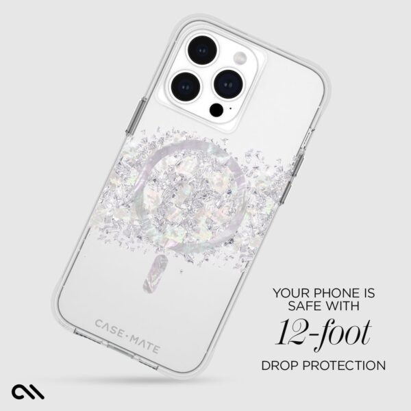 Pretty in pearls— the Touch of Pearl MagSafe Phone Case for the iP 15 Pro Max features genuine Mother of Pearl elements with an irresistible pearlescent design. We know how much you love your phone. so feel confident knowing it’s safe with 12-foot drop protection while strong built-in magnets allow for easy MagSafe accessorizing and charging.