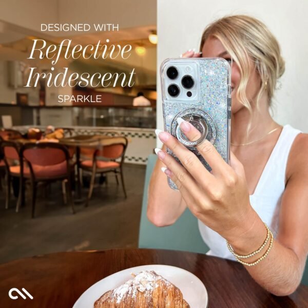 The Twinkle Disco MagSafe Phone Case for iP 15 Pro is the life of the party! Get groovy with the reflective iridescent sparkle that catches the light like a disco ball while strong built-in magnets allow for easy MagSafe accessorizing and charging. We know how much you love your phone. so feel confident knowing it’s safe with 12-foot drop protection.